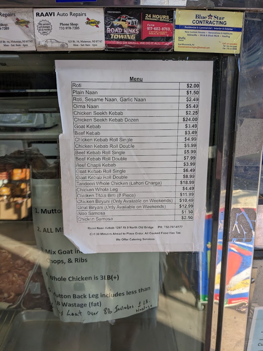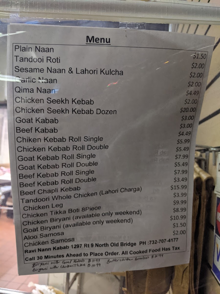 Raavi Naan Kabab offers a menu that skillfully balances classic South Asian flavors with approachable comfort dishes. Regular mains like Roti, Goat Kebab, Sesame Naan, Chicken Seekh Kebab, and Aloo Samosa showcase the restaurant’s attention to both traditional preparation and quality ingredients. For those visiting on weekends, the menu expands to include indulgent specials such as Chicken Biryani (Weekends Only), Halwa Puri, and Goat Biryani (Weekends Only), adding a festive touch and giving diners the opportunity to enjoy heartier, celebratory dishes. Each item is thoughtfully crafted, with kebabs and naans offering a satisfying combination of texture and flavor, while the weekend biryanis and halwa puri provide a richer, aromatic experience that reflects authentic culinary roots. Overall, the menu at Raavi Naan Kabab is concise yet varied, appealing both to regular patrons seeking familiar favorites and to weekend visitors looking for special, flavorful treats.